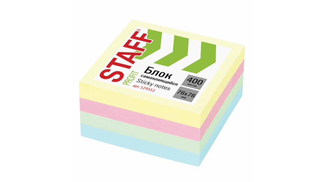 Блок самоклеящийся STAFF PROFIT, 76*76 мм, 400 листов, 4 цвета, 129352