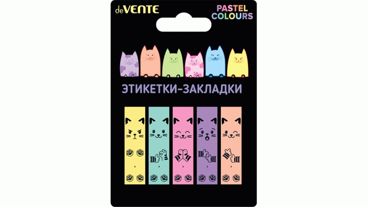 Набор самоклеящихся этикеток-закладок "deVENTE. Kitty" пластиковые с дизайном, 45x12 мм, 5x20 листов, 5 дизайнов, в картонном блистере и пластиковом пакете с европодвесом
