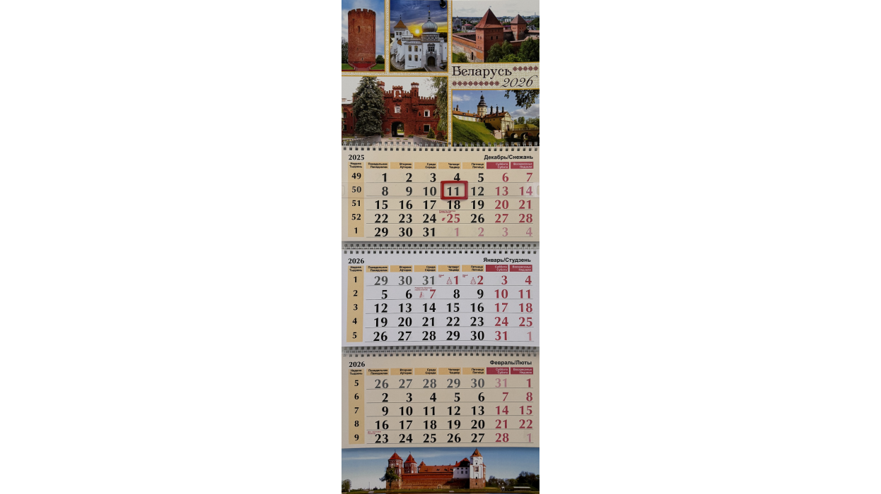 Календарь настенный на 2026 год, квартальный, С БЕЛОРУССКИМИ ПРАЗДНИКМИ. Квартальный календарь : календарные блоки с 01 декабря 2025 по 31 января 2026 года. Настенный календарь – неотъемлемый предмет любого современного офиса, который вполне гармонично впишется в любой домашний интерьер. При всей своей простоте и привычности этот товар станет отличным выбором для подарка, объединив в себе практичность, удобство и актуальность в течение долгого времени. Это наглядный и удобный источник информации, отличный рекламный инструмент и практичный фирменный сувенир.