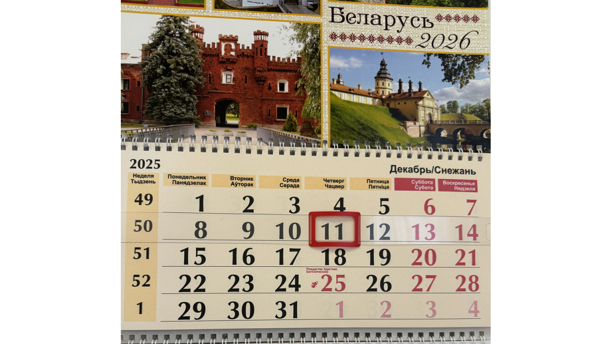 Календарь настенный 2026 год "Беларусь" на 3 спиралях, люверс, жёлтый блок