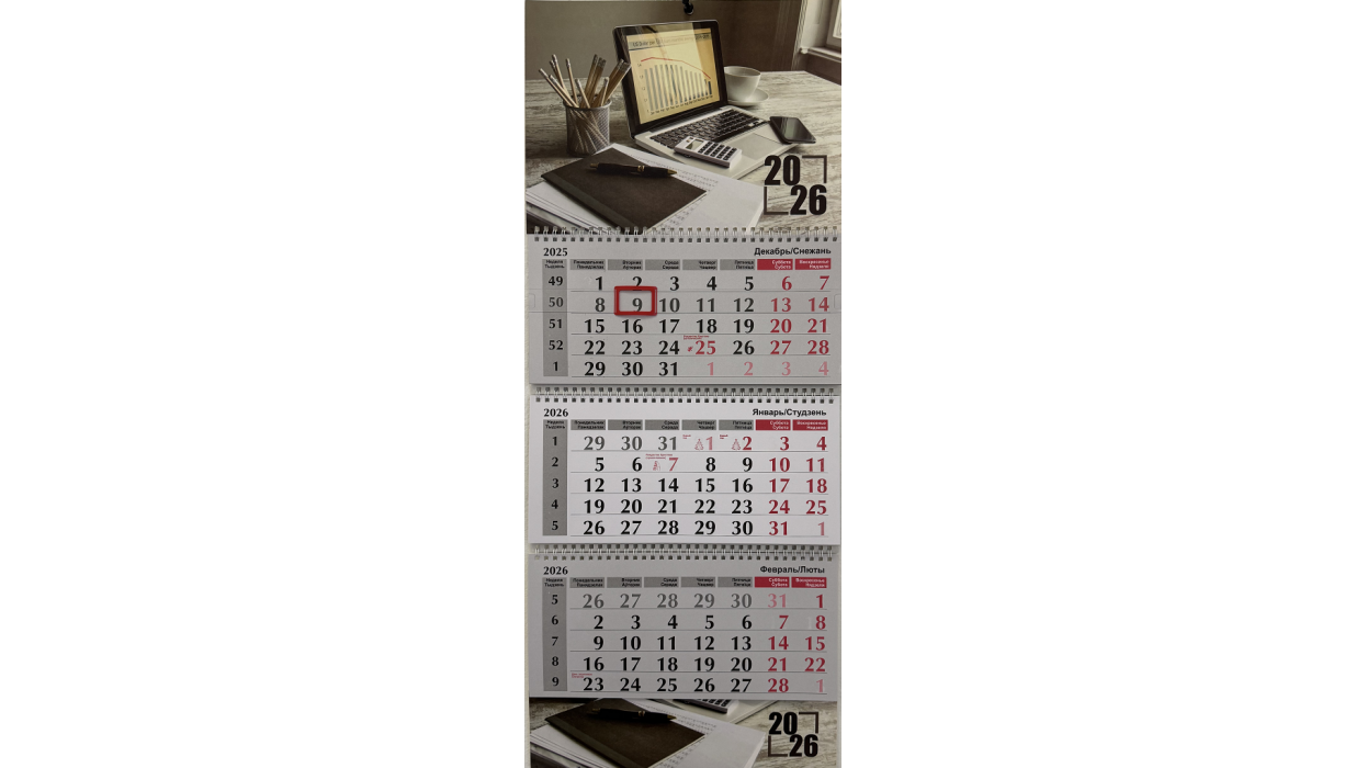 Календарь настенный на 2026 год, квартальный, С БЕЛОРУССКИМИ ПРАЗДНИКМИ. Квартальный календарь : календарные блоки с 01 декабря 2025 по 31 января 2026 года. Настенный 6календарь – неотъемлемый предмет любого современного офиса, который вполне гармонично впишется в любой домашний интерьер. При всей своей простоте и привычности этот товар станет отличным выбором для подарка, объединив в себе практичность, удобство и актуальность в течение долгого времени. Это наглядный и удобный источник информации, отличный рекламный инструмент и практичный фирменный сувенир.