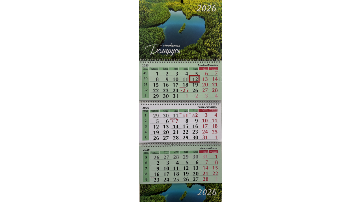 Календарь настенный на 2026 год, квартальный, С БЕЛОРУССКИМИ ПРАЗДНИКМИ. Квартальный календарь : календарные блоки с 01 декабря 2025 по 31 января 2026 года. Настенный календарь – неотъемлемый предмет любого современного офиса, который вполне гармонично впишется в любой домашний интерьер. При всей своей простоте и привычности этот товар станет отличным выбором для подарка, объединив в себе практичность, удобство и актуальность в течение долгого времени. Это наглядный и удобный источник информации, отличный рекламный инструмент и практичный фирменный сувенир.