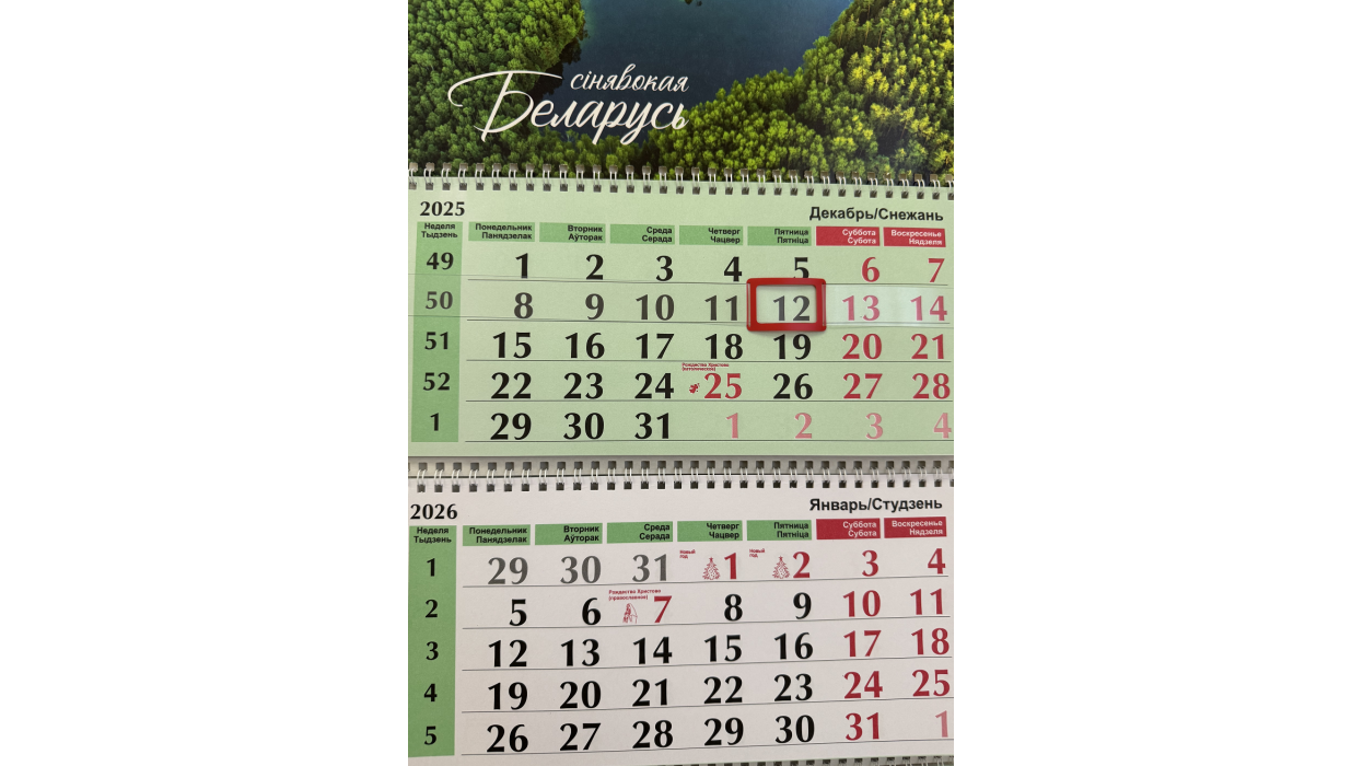 Календарь настенный 2026 год "Сiнявокая Беларусь" на 3 спиралях, люверс, зелёный блок