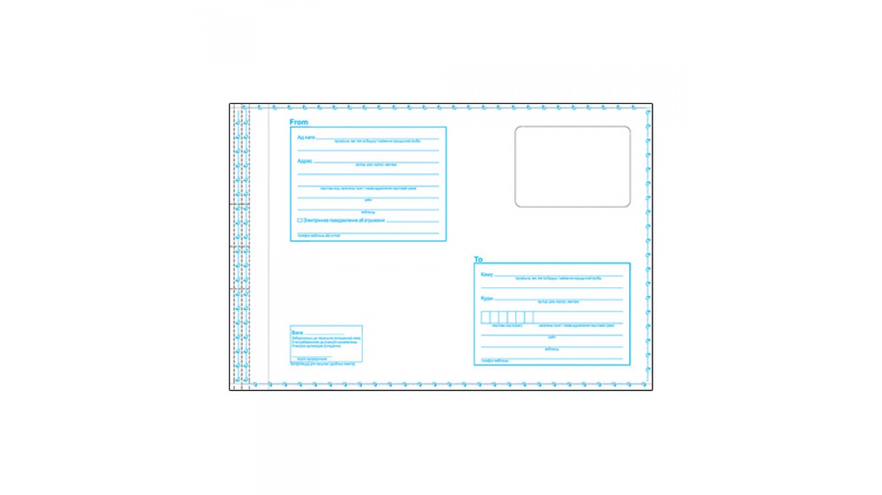 Почтовый пластиковый конверт (пакет) размером 229*324 мм для писем и бандеролей, немаркированный, с адресной сеткой, клапан вертикальный самоклеящийся.