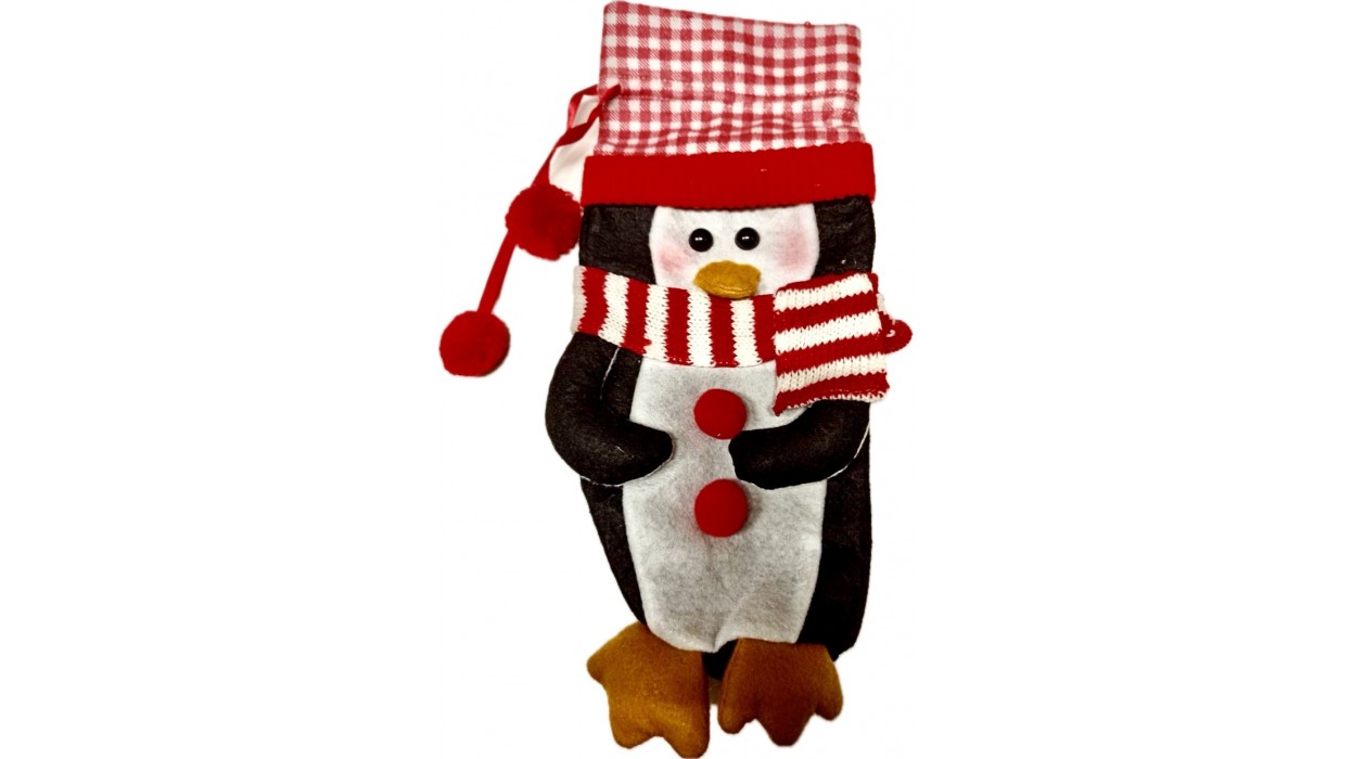Мешок подарочный для бутылки ПИНГВИН, 28*13 см, полиэстр, 1 шт в пакете, арт. N02315