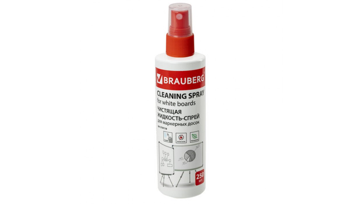 Чистящая жидкость-спрей BRAUBERG предназначена для очистки поверхности маркерных досок.