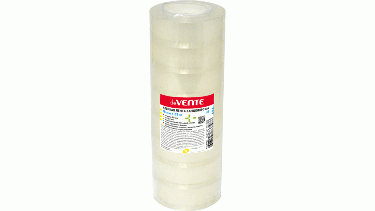 Клейкая лента канцелярская "deVENTE" прозрачная, 35 мкм, 18 ммx33 м, пластиковая втулка, арт. 4162705