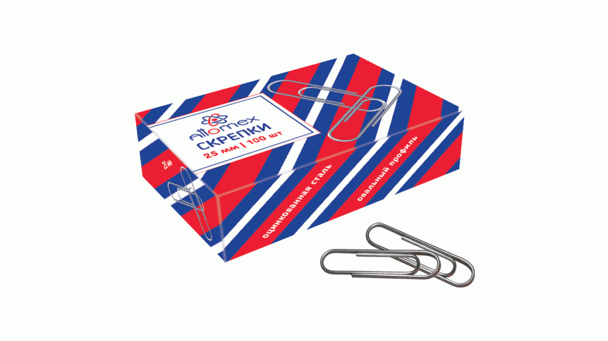 Скрепки металлические "Attomex" овальные оцинкованные 25 мм, 100 шт в карт. кор., 4135300