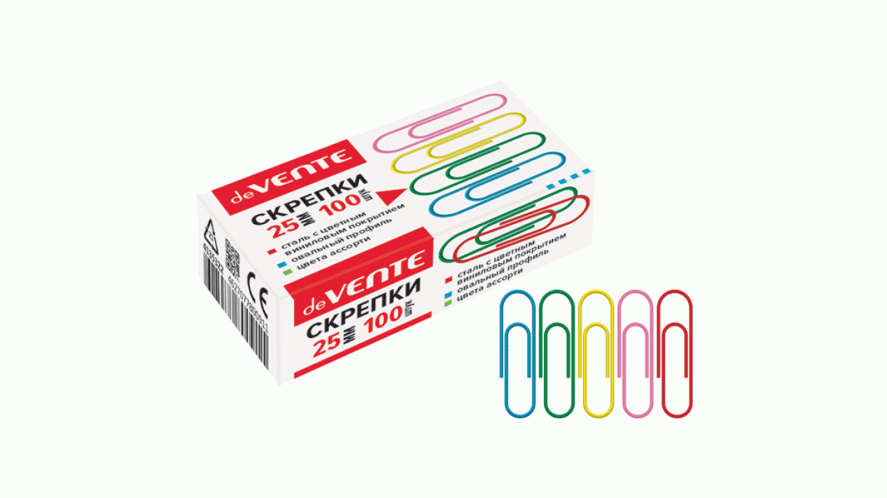 Скрепки металлические "deVENTE" овальные цветные 25 мм, 100 шт в картонной коробке, 4135322