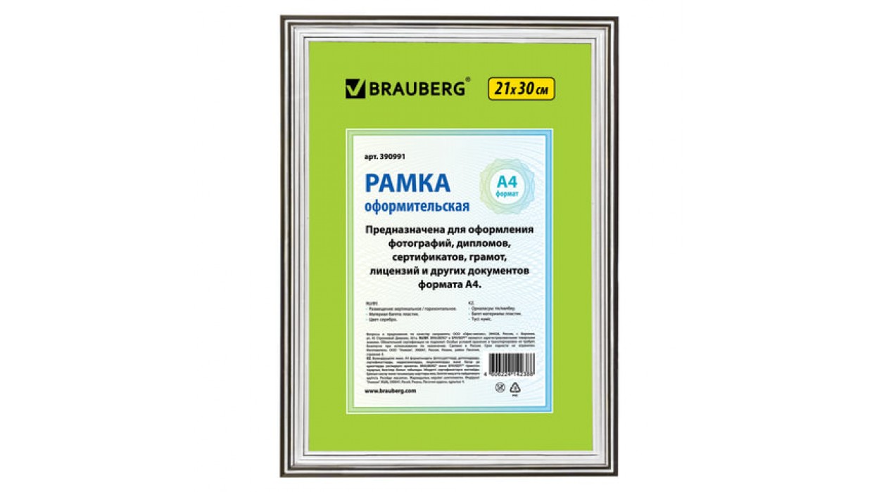 Рамка BRAUBERG "HIT3" для оформления фотографий, дипломов, сертификатов, грамот, лицензий и других документов формата А4 (21х30 см) будет гармонично смотреться в любом интерьере - дома и офисе, учебных учреждениях и магазинах, салонах и предприятий и др.