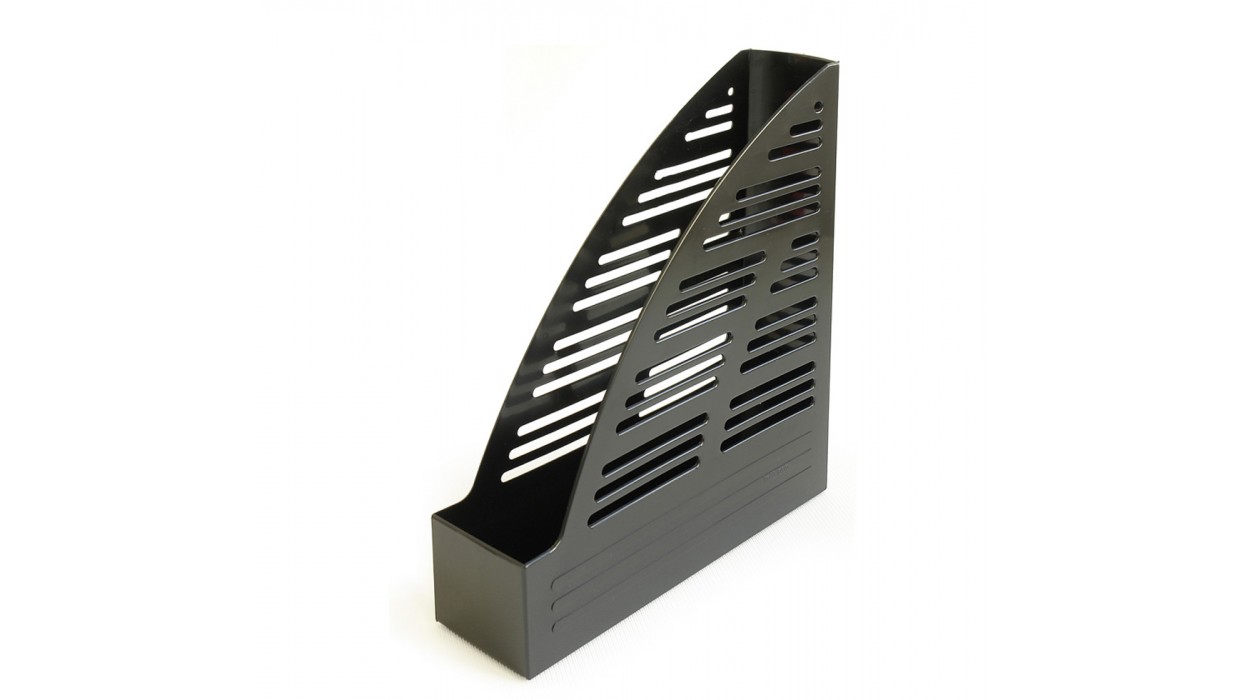 Вертикальный накопитель выполнен из полистирола черного цвета и служит для организации рабочего стола в офисе. Благодаря своим универсальным размерам подойдет для каталогов и документов формата А4. Модель компактна и при этом очень устойчива, исключено опрокидывание даже при заполнении всего отсека.