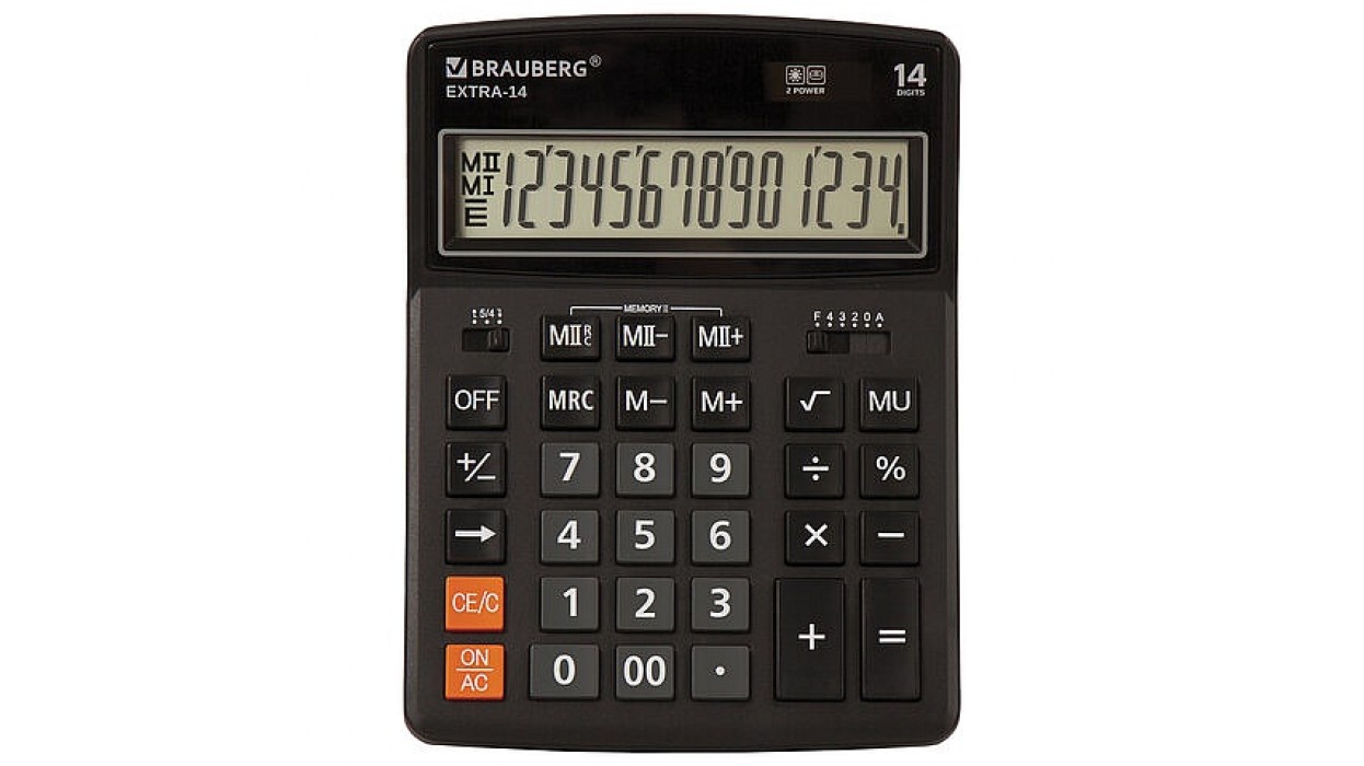 Настольный калькулятор BRAUBERG EXTRA-14-BK. Большой дисплей с увеличенным углом обзора, устойчивый корпус и клавиатура с цветной дифференциацией для эффективной работы с максимальным комфортом.