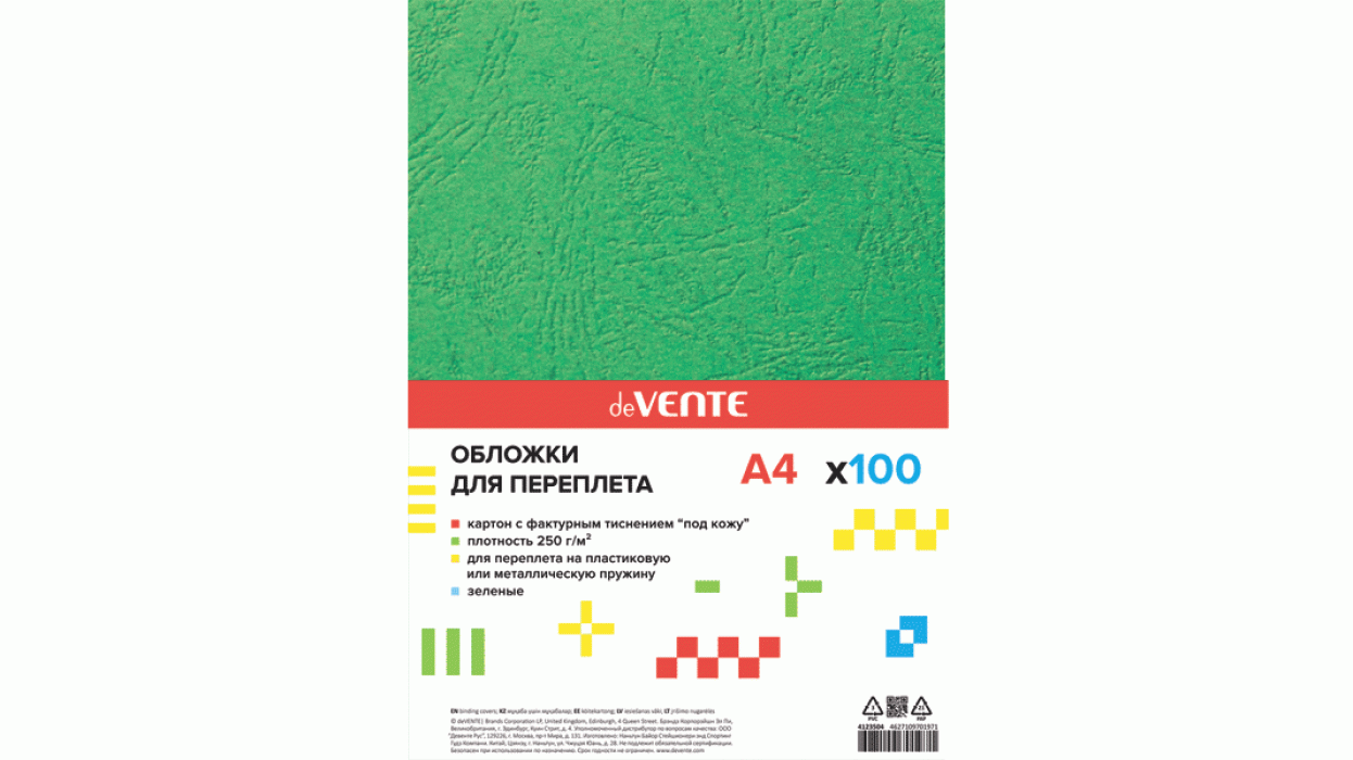 Обложка для переплета "deVENTE для оформления документов. Delta" A4, картон с тиснением "кожа" темно-зеленого цвета, плотность 250 (230) г/м², 100 л