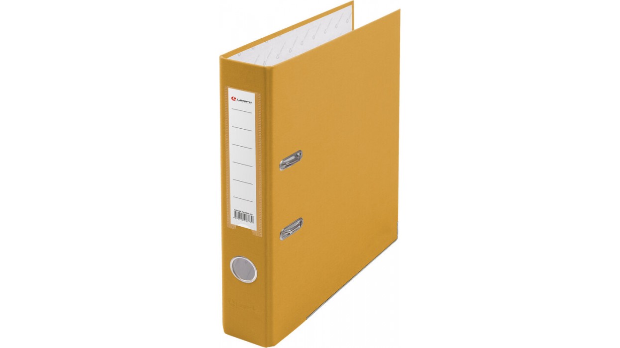 Папка-регистратор с арочным механизмом изготовлена из плотного картона, с внешней стороны покрыта защитным слоем поливинилхлорида. Формат А4. Нижние края папки защищены металлическим кантом. На корешке шириной 50 мм есть карман с маркировочной этикеткой и кольцо для удобного захвата. Папка-регистратор вмещает до 220 листов стандартной плотности.