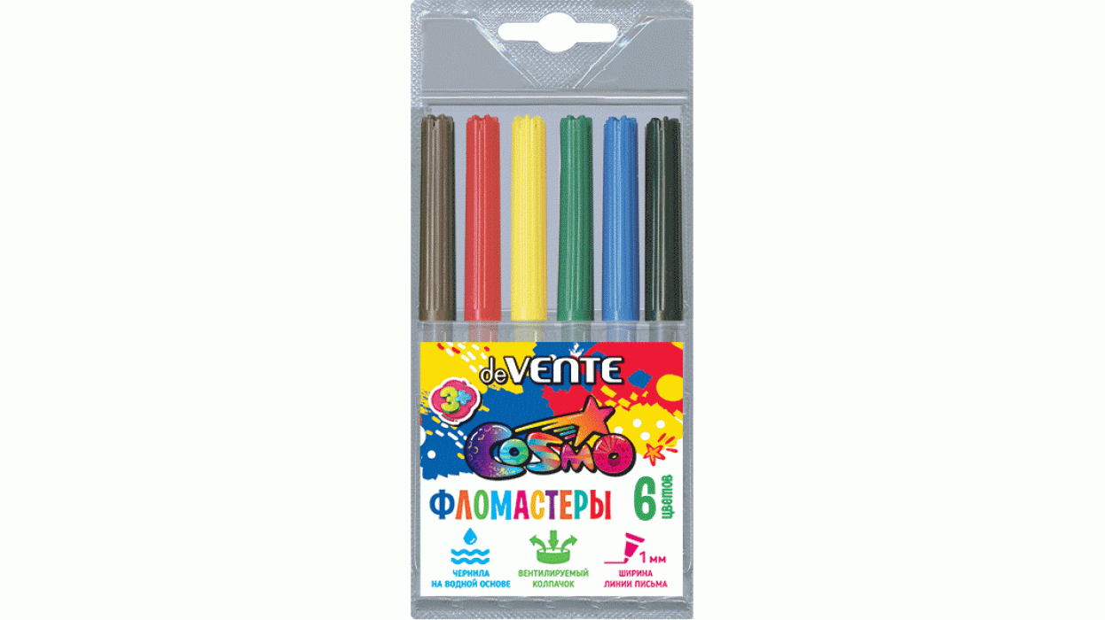 Фломастеры "deVENTE. Cosmo" 6 цветов с вентилируемым колпачком, в пластиковом блистере, 5080310