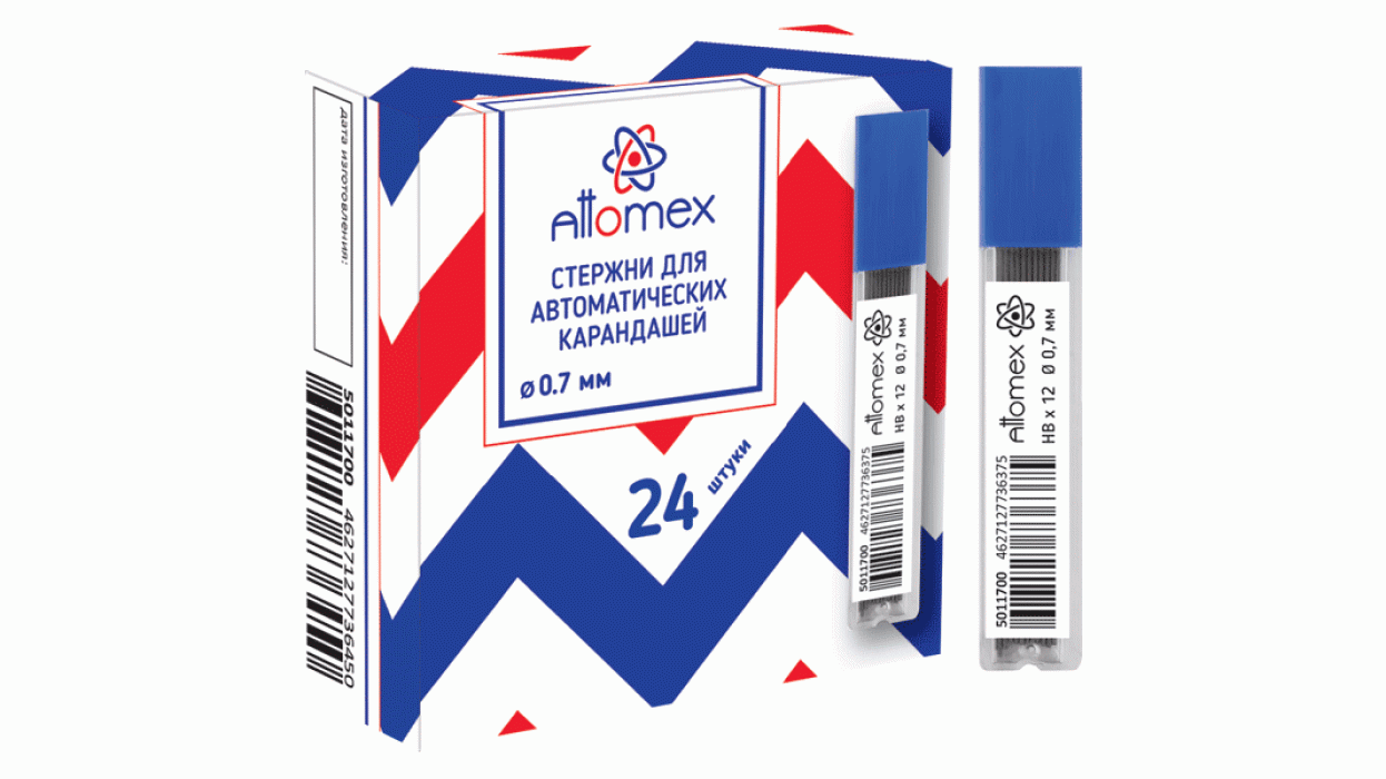 Грифели для карандашей автоматических "Attomex" d=0,7 мм, HB, 12 шт в пластиковом боксе, 5011700