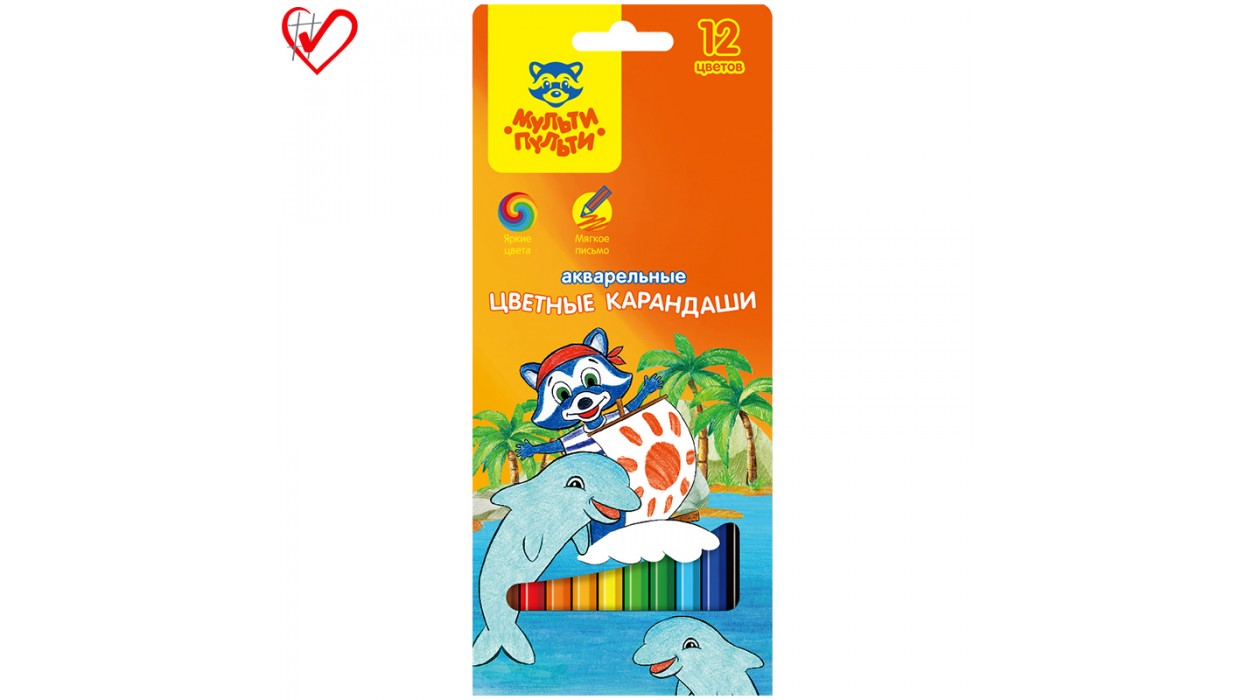 Карандаши акварельные Мульти-Пульти "Енот в Карибском море", 12цв., заточен., картон, европодвес CP_10762