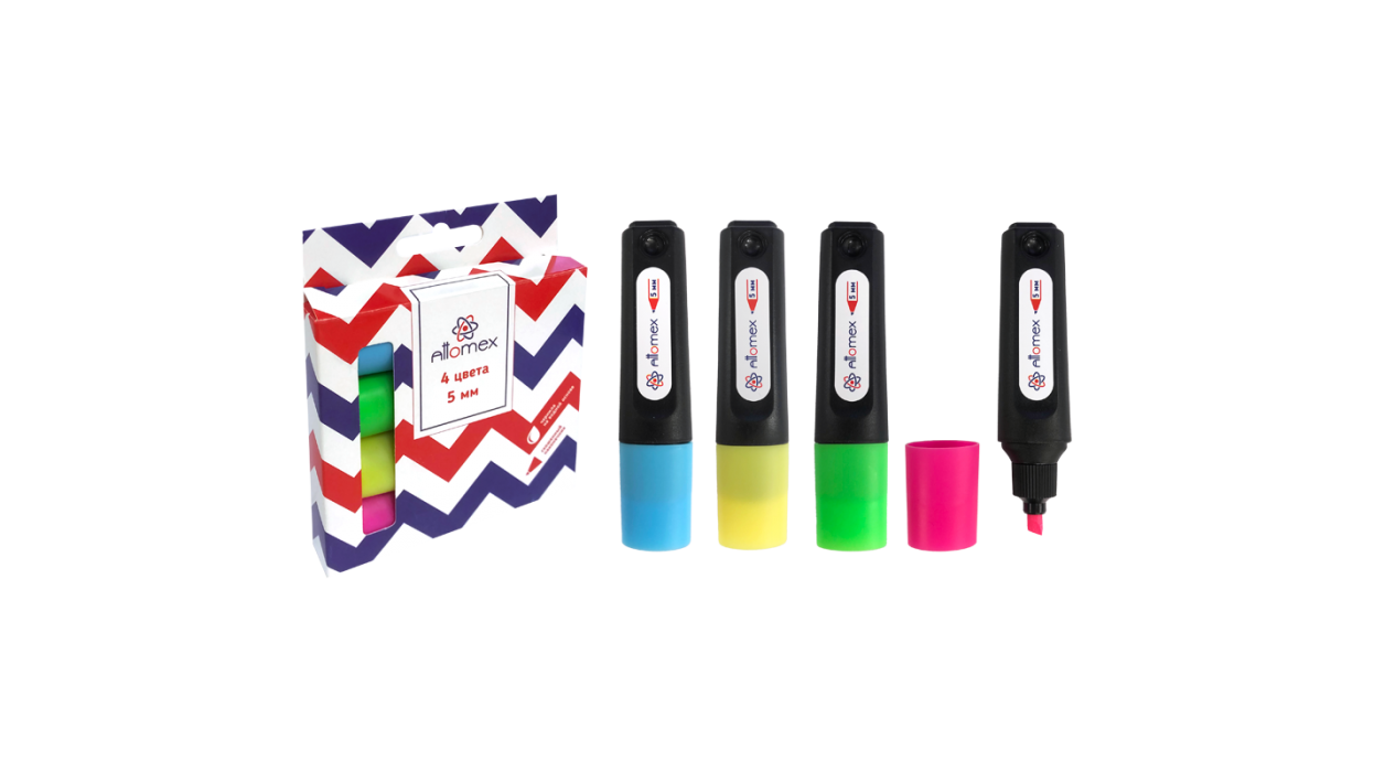 Набор текстовыделителей "Attomex" (04 цв - желт, зел, гол, роз), ширина линии 1-5 мм, в картонной коробке, 5045356