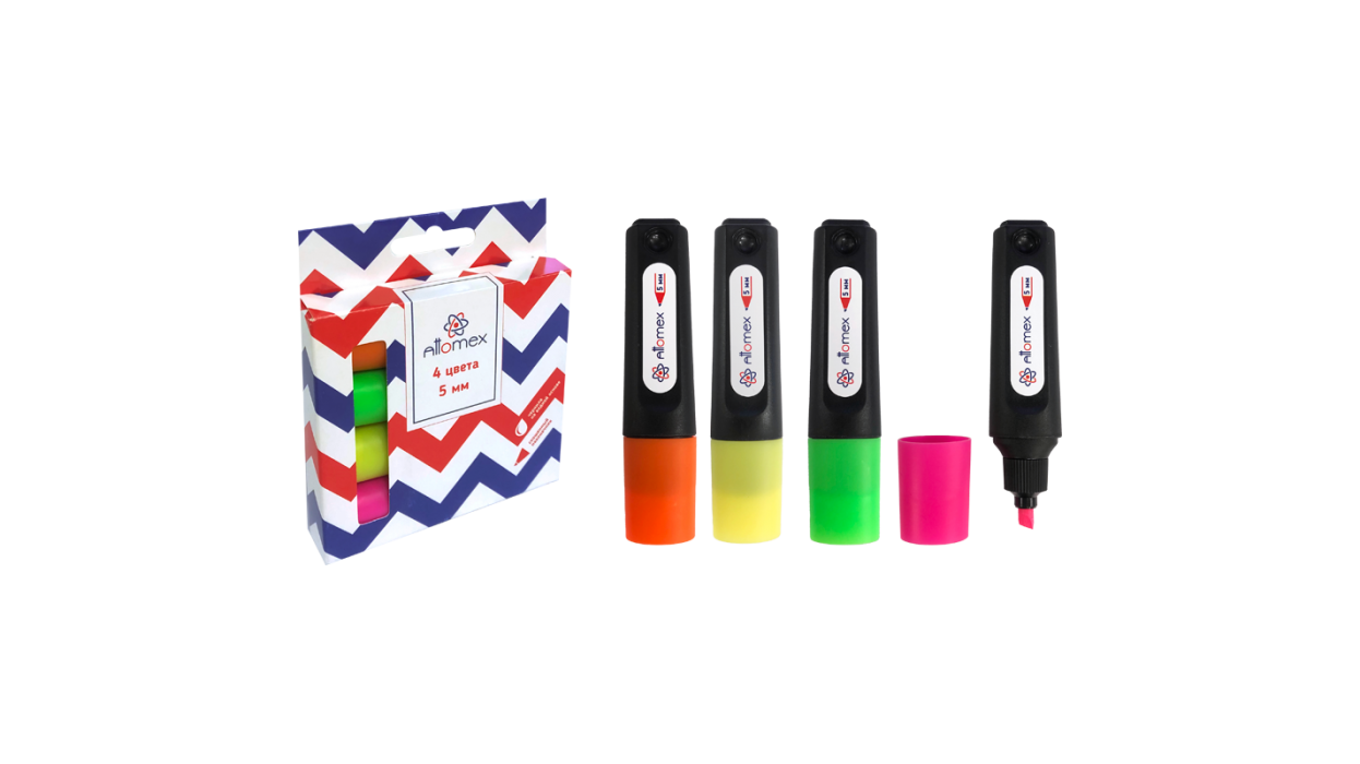 Набор текстовыделителей "Attomex" (04 цв - желт, зел, оранж, роз),ширина линии 1-5 мм, в картонной коробке, 5045357