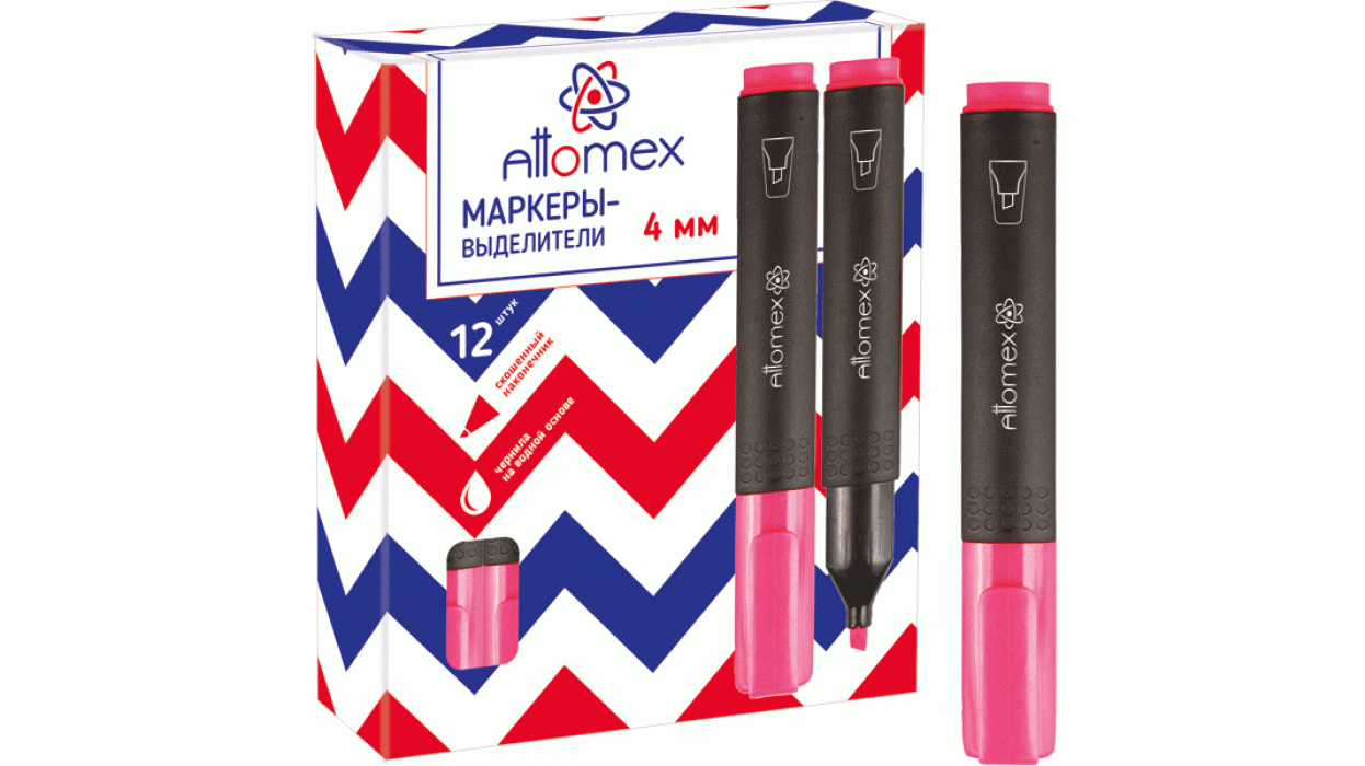 Маркер-текстовыделитель "Attomex", скошенный наконечник, ширина линии 1-4 мм, розовый, 5045303