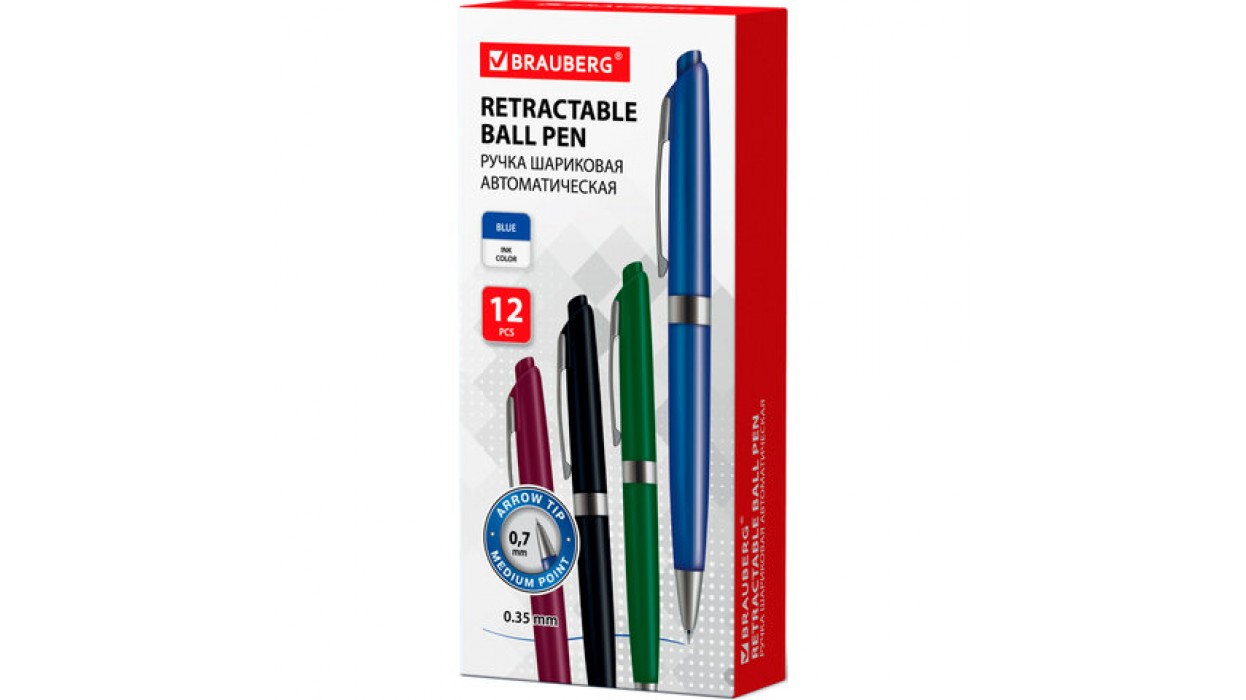 Ручка шариковая автоматическая BRAUBERG "Diplomat", СИНЯЯ, корпус ассорти, узел 0,7 мм, линия письма 0,35 мм, 141007