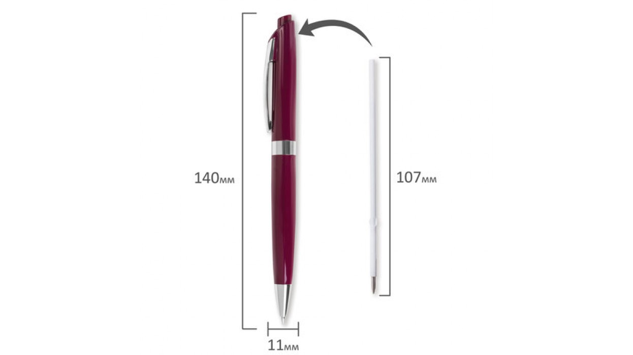 Имеет круглый корпус из ассорти цветов с металлическими деталями и клипом. Сменный стержень длиной 107 мм со стандартным наконечником позволит использовать ручку максимально долго. Диаметр пишущего узла, равный 0,7 мм, создает тонкую линию письма, равную 0,35 мм. Цвет чернил — синий.