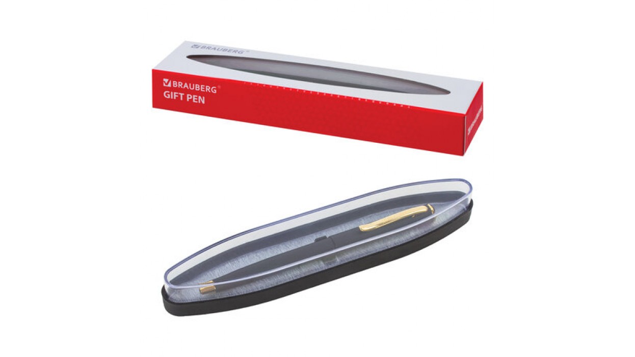 Ручка бизнес-класса шариковая BRAUBERG, СИНЯЯ, корпус черный с золот., линия 0,5мм, 143470