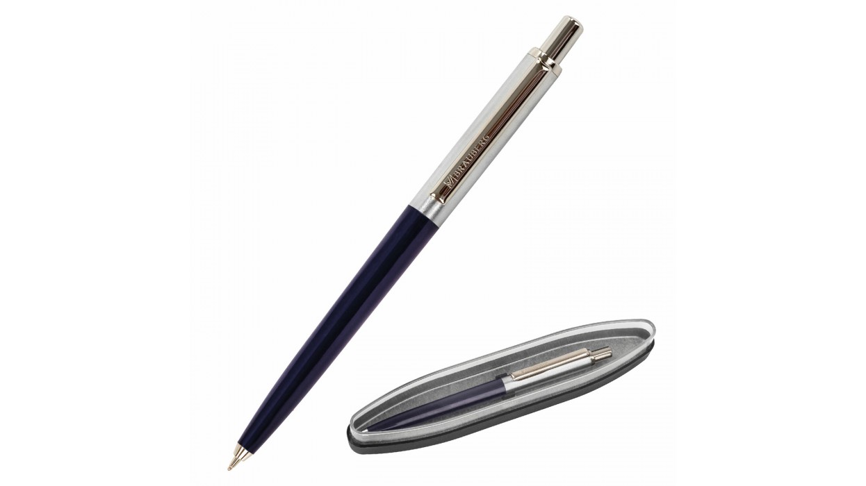 Ручка бизнес-класса шариковая BRAUBERG, СИНЯЯ, корпус серебристый с черным, 0,5мм, 143484