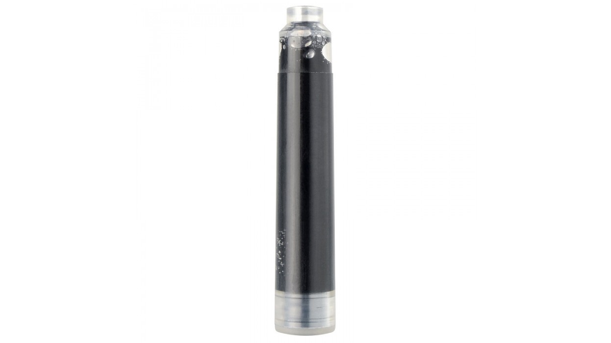 Комплект сменных чернильных патронов для перьевых ручек 5 штук в упаковке. Каждый патрон (картридж) длиной 38,2 мм содержит черного цвета.