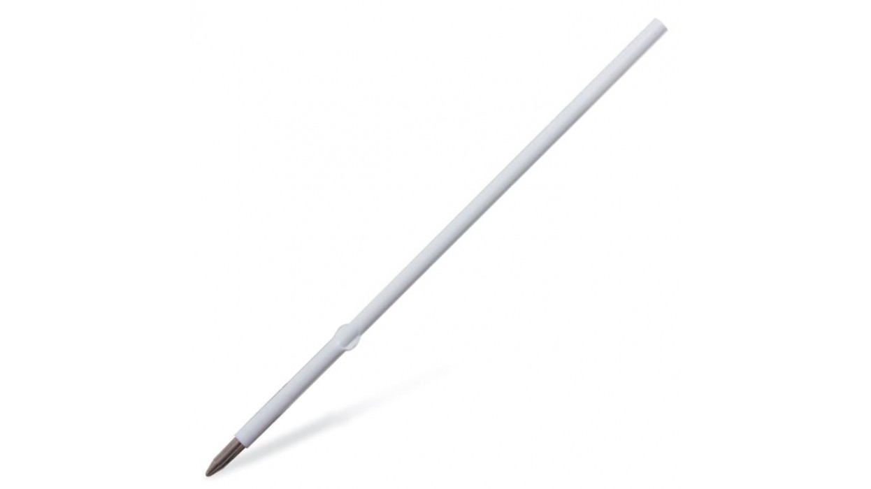 Длина стержня составляет 107 мм. Диаметр пишущего узла 0,5 мм создает тонкую линию письма, равную 0,35 мм. Имеет стандартный наконечник. Цвет чернил - синий.