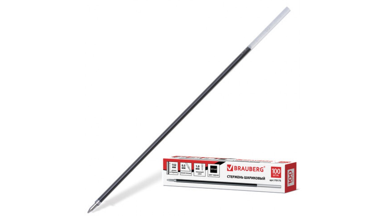 Стержень шариковый BRAUBERG 152 мм, евронаконечник, 0,7мм, черный, 170175