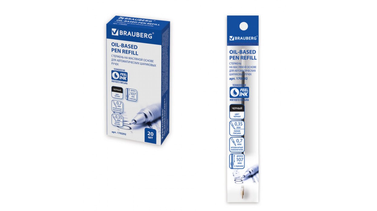 Сменный стержень шариковый масляный BRAUBERG обеспечивает мягкое и комфортное письмо благодаря чернилам пониженной вязкости (на масляной основе).