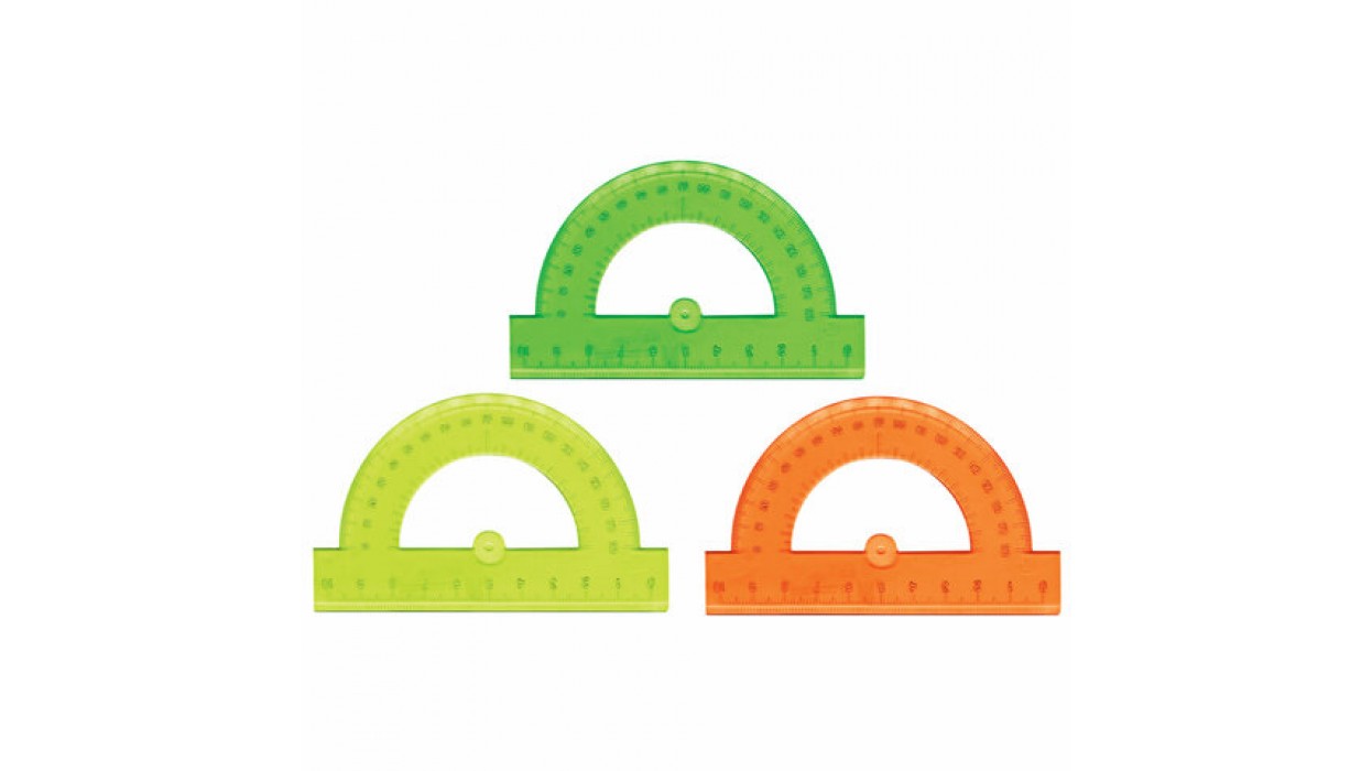 Транспортир пластик 10 см, 180 градусов, прозрачный, неоновый, ассорти, BRAUBERG, 210620