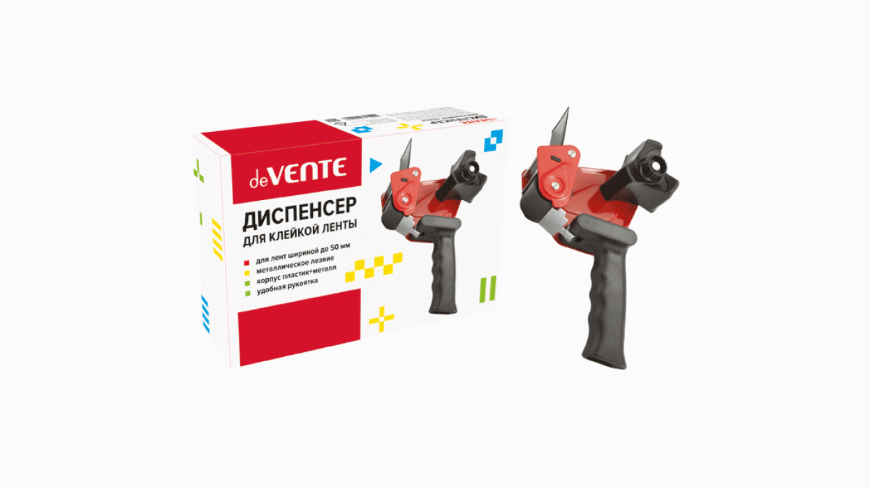 Для быстрого и удобного использования клейких лент, а также при использовании нестандартной упаковки применяют ручные приспособления — диспенсер для лент шириной 50мм. Диспенсер имеет удобную рельефную ручку, не позволяющую руке уставать, снабжен каучуковым валиком, предотвращающим сдвиги ленты, металлическим лезвием для обрезки ленты и конечной прозрачной пластиной для прижима отрезанной ленты. Диспенсер позволяет быстро и качественно наносить клейкую ленту на упаковку, обеспечивая при этом необходимое давление для фиксации. Использование диспенсера для клейкой ленты – это шаг к оптимизации процесса упаковывания и уменьшению временных затрат.